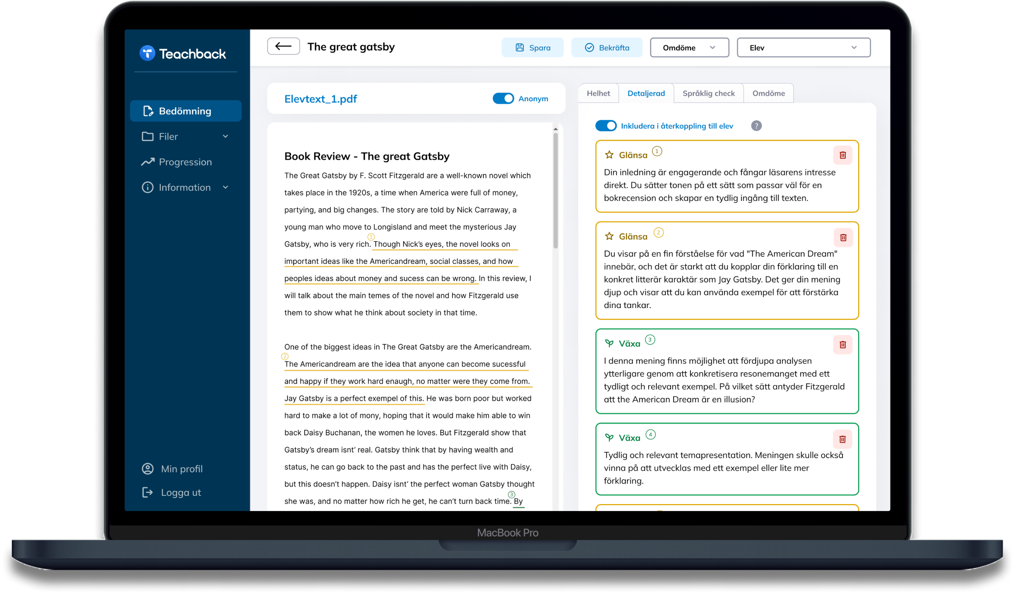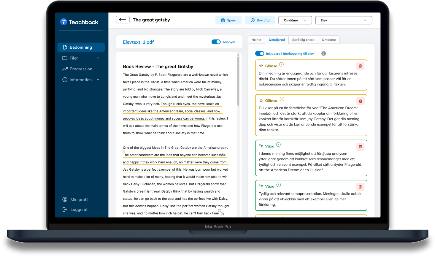 Varje klick, varje funktion är vägledd av er lärare. Teachback är byggt på djupgående feedback för att skapa ett meningsfullt stöd.