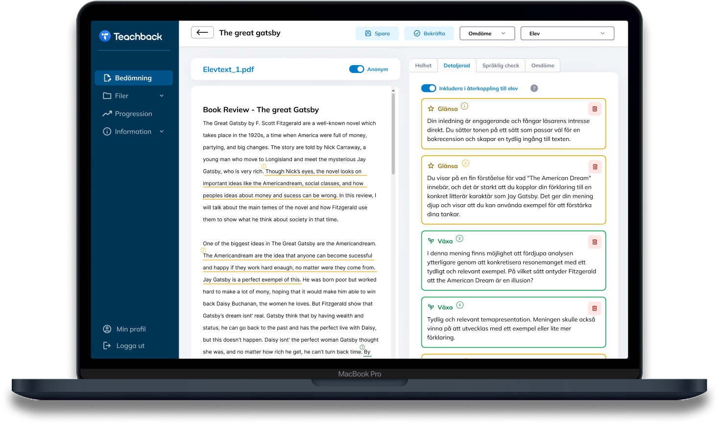 Varje klick, varje funktion är vägledd av er lärare. Teachback är byggt på djupgående feedback för att skapa ett meningsfullt stöd.